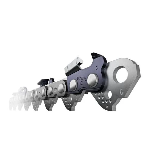 La chaîne de tronçonneuse STIHL Rapid Hexa est basée sur le système breveté et exclusif STIHL HEXA dont les extrémités des gouges sont en formes de V. Cette chaîne offre +10% de performance de coupe par rapport à la chaîne « Rapid Super » grâce à son profil de gouge plus étroit offrant plus de rendement et plus de durabilité dans le temps. L’affûtage est également plus rapide et plus simple avec des meilleurs résultats grâce au système HEXA. Grâce à la faible tendance au cliquetis, vous pouvez utiliser la tronçonneuse avec précision et la guider en toute sécurité à travers le bois. Idéale pour la foresterie professionnelle et la récolte du bois.