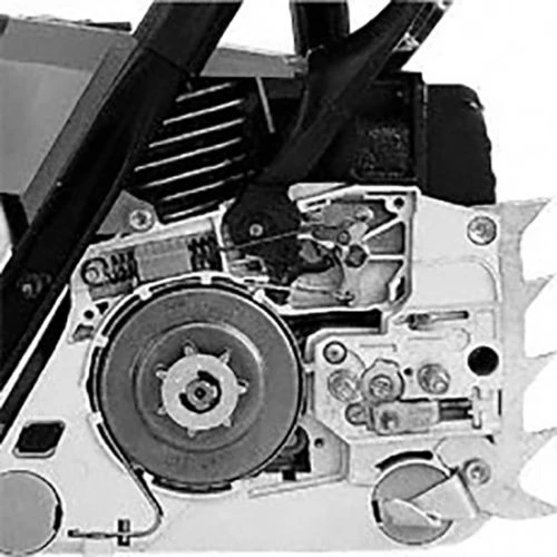 Offre une sécurité supplémentaire lors de l’utilisation de tronçonneuses. Le frein de chaîne est actionné par le protège-main avant et immobilise la chaîne en quelques fractions de seconde. En cas de rebond suffisamment violent, le frein de chaîne QuickStop se déclenche automatiquement